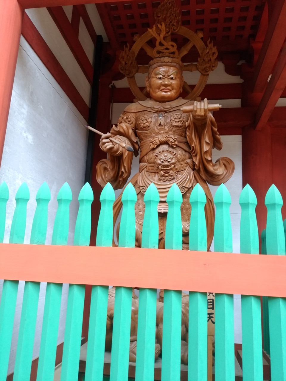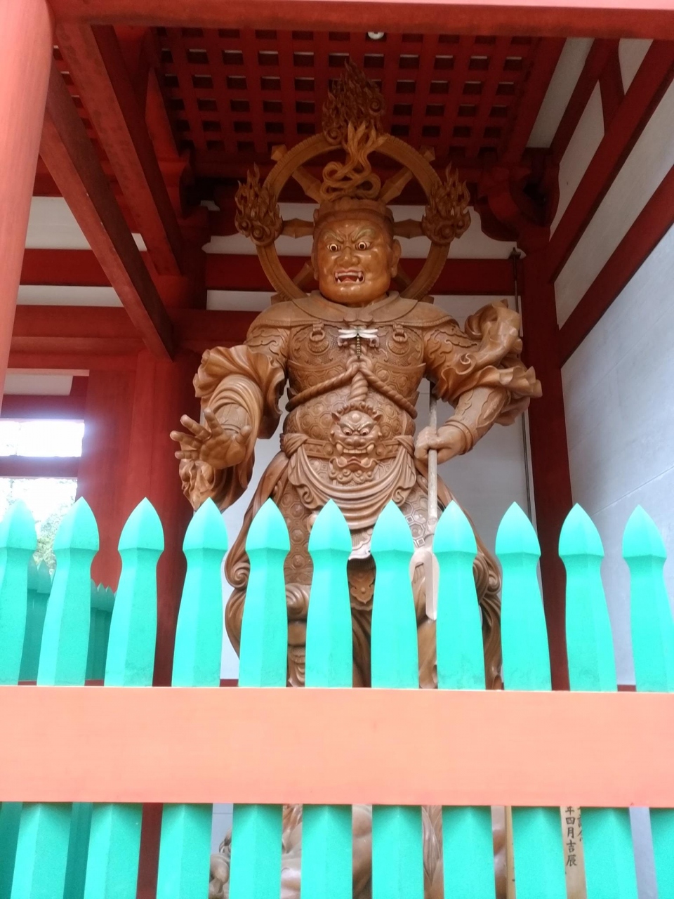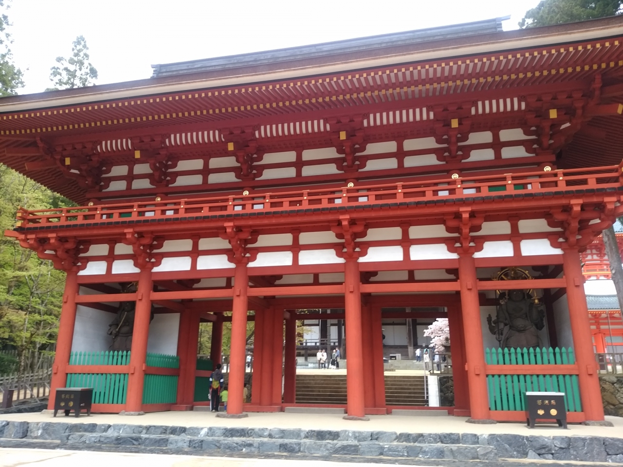 東大阪市から京奈和道を通りかつらぎ西ICを降りて、通行し易い480号線を40分山を登って行くと最初に高野山の入口である山門が現れます。高野山の総門で開創当時は現在地より下がった九折谷にあったそうで、現在の建物は1705年に再建され両脇に金剛力士像があり、阿形像、うんぎょう像共に有名な運長作だそうで、先日奈良の東大寺にいって見た仁王像の次に大きくダイナミックで、今にも動きそうな巨像で迫力があり良かったです。