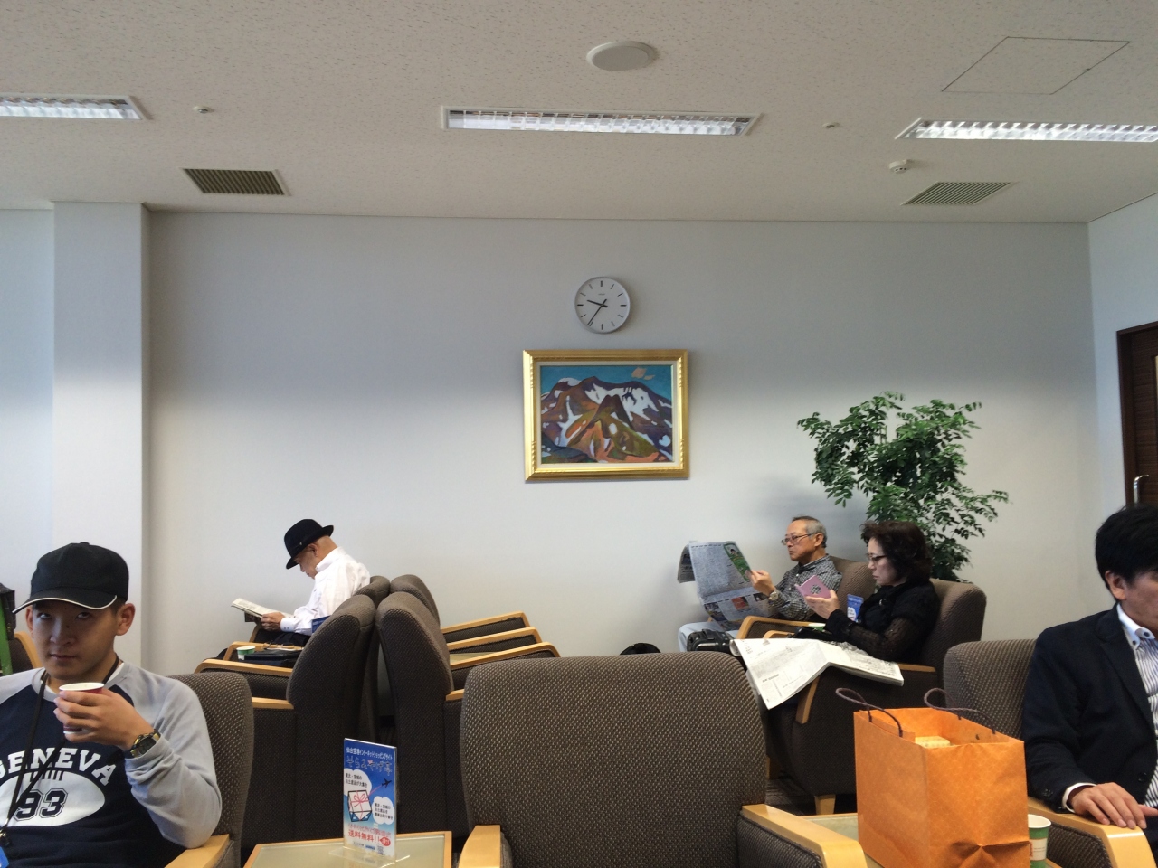 今日は、レンタカーを9時に返却しないといけないので、秋保温泉緑水亭で40分位ときいたので早めの1時間前に出発。すると20分で着いてしまった。仙台駅から空港に着いてビジネスラウンジでゆっくりしていると、1時間出発が伸びるとアナウンスがあり、ラウンジは1時間制限だったので、時間潰しにロイヤルコーヒーでお茶しました。飛行機の発着が見れて景色は抜群でゆっくりできました。