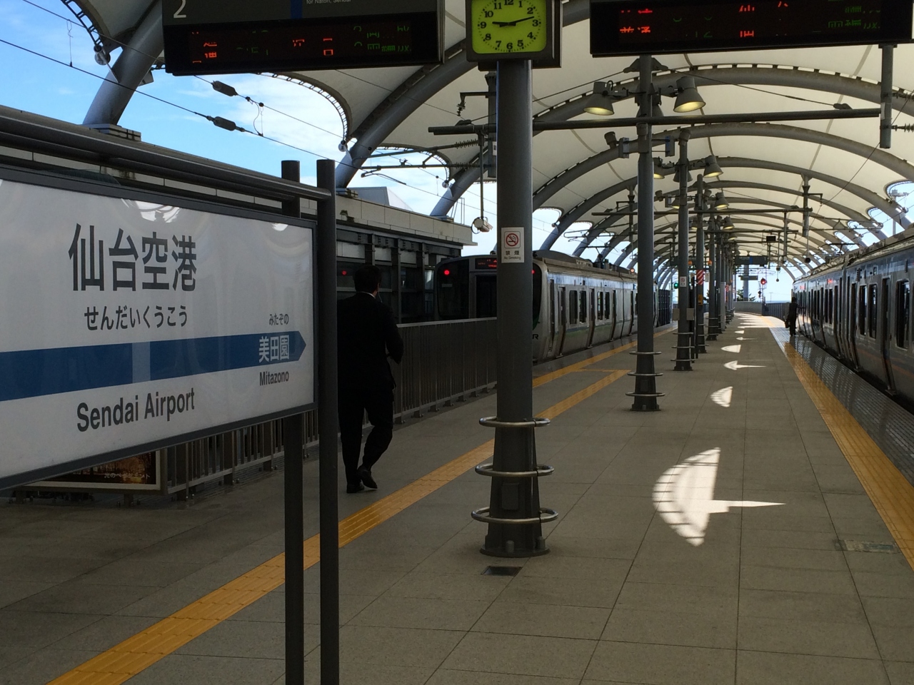 仙台空港⇔仙台駅を25分で行き来で便利です。空港からも荷物ゲートからエスカレーターに乗り二階に行くとすぐ駅がありました。帰りの列車は結構満席で私は座席に座ることが出来ませんでした。停車駅は仙台空国-美田園-杜せきのした-名取-南仙台-太子堂-長町-仙台です。列車の座席も綺麗でゆったりしていました。