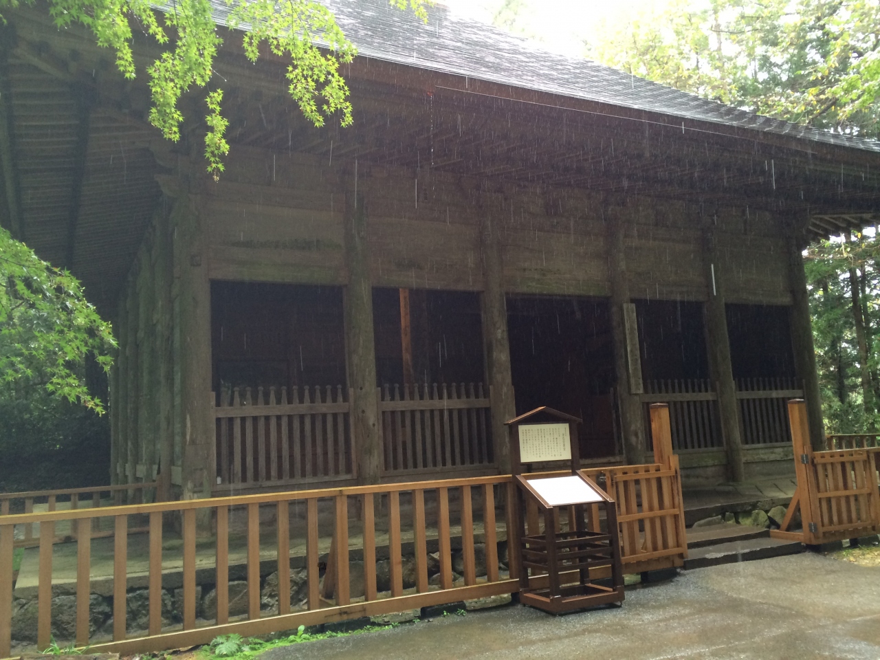 平泉文化遺産センターの前の道路の向こうにあります。奥州藤原三代清衡が平泉鎮護の神として五方鎮守総社を建立した際、當熊野社を平泉北方鎮守の神として熊野社を建立し、五間四面の宮造りの社殿で紀伊国より熊野権現の分身を本宮より御分霊賜り守護神として木像を安置したそうです。焼失や改築をして老朽化により、平成22年に社殿を造営し境内を整備しています。それにしても今日は雨のせいか、有名な観光場所以外に人がいませんでした。団体客が多いせいかも。