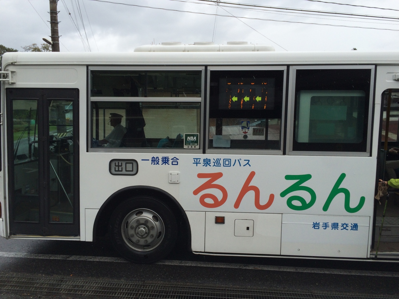 中尊寺と毛越寺をメインに観光しましたが、中尊寺400円毛越寺300円を始め駐車料金が結構かかる。勿論無料の場所も結構あり、るんるんバスを利用するのは何処を観光するかによります。平泉駅から7ケ所を停車しながら20分間隔で巡回してきますので便利です。一回の乗車が150円ですが、1日フリー乗車券なら400円です。私達は中尊寺から平泉文化センターまで徒歩で行きましたが、観光が終わるとバスを待っている人がいて、他の観光地まで巡回して好きな場所で降車できるので利用しました。でも今日は雨なのか中尊寺第二駐車場が無料だったので利用価値がありましたが。駐車料金を払った場合どちらが得で便利かは微妙かもしれません。