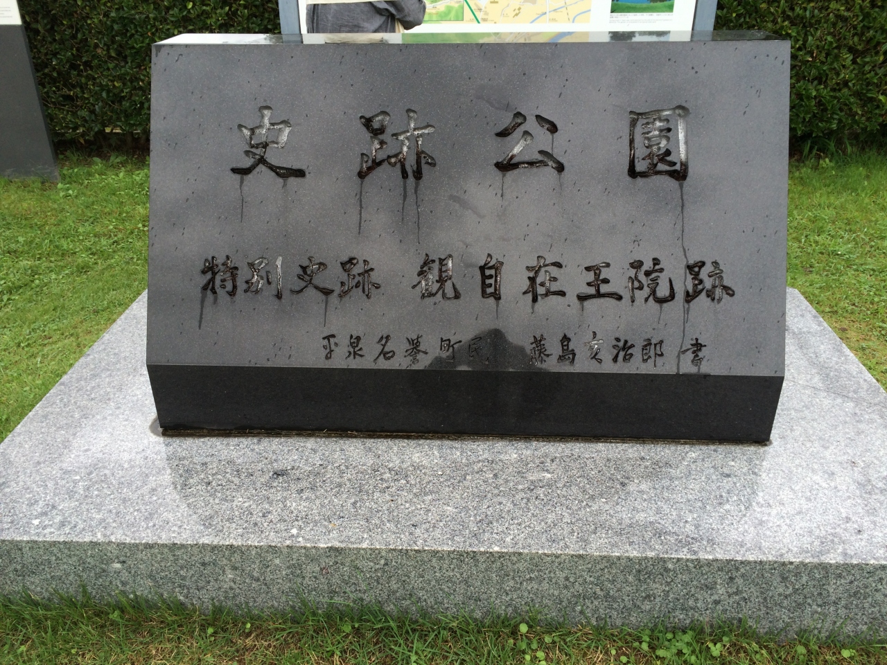 中尊寺観光が終わって徒歩10程度ですが、中尊寺に多くの人がいたのに誰も観光していませんでした。場所は北上川面した丘陵で判官館とも呼ばれています。急な階段を登って行く時に大きな音が聞こえましたが、階段を登ると崖の上にいる感じで策の向こうの景色は良かったと言う位辺鄙な場所でした。義経は初代清衡から三代秀衡に庇護されましたが、秀衡の遺言を守らなかった泰衡が、頼朝の圧迫に耐え切れず義経を急襲し、この地で妻子と共に自害したそうです。堂内には義経像があり、資料館と思われる場所には仏像や義経を取り巻く人々の図があり、階段を登った右側には芭蕉句碑の「夏草や 兵どもが 夢の後」がありましたが、大河ドラマ等で有名な義経最後の智としては寂しい限りでした。
