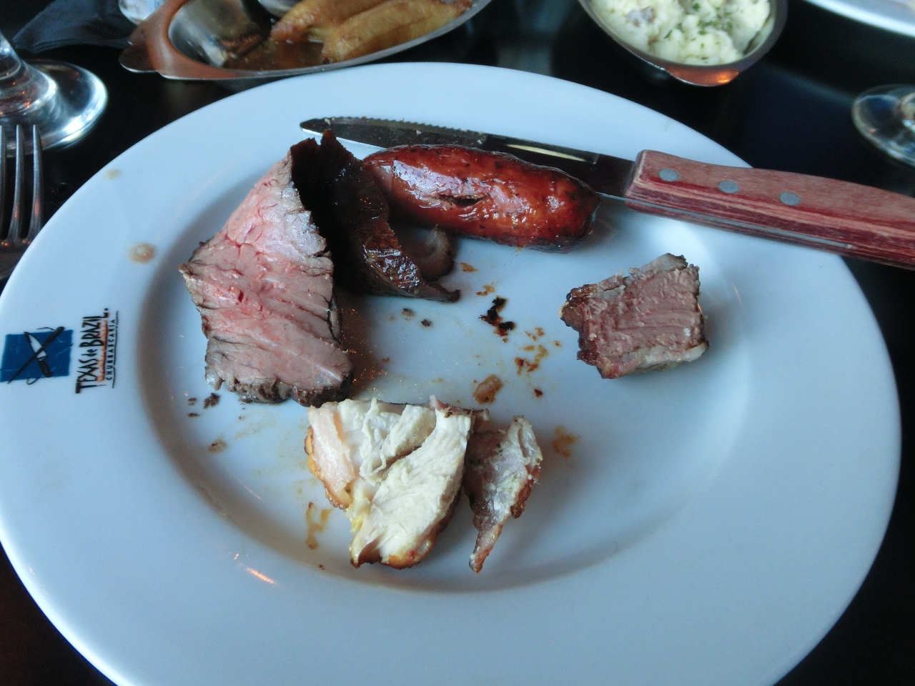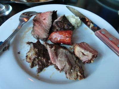 ブラジル料理で長い鉄串に肉が刺してあり、色々な種類の肉を切ってくれます。日本でも食べた事がありますが、各テーブルを回って希望の大きさに切ってくれます。そして、オーダーストップの意志表示をするまで肉が回ってきますので、オーダーストップをしても何種類かは回ってきて大満足でした。他にもバイキング形式でフルーツ・野菜等がありサービス満点で美味しかったです。