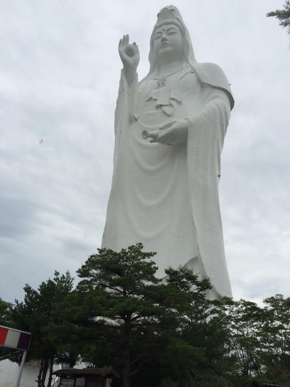 総本山は京都東山の智積院で、真言宗智山派に属す密教寺院で、正式名称は仙台天道白衣大観音と言うらしい。住宅地にあり隣はホテルが建っていて、ホテルの敷地から入りました。遠くからも目立つ大観音で、創建当初は観光客や参拝者も多かったと掃除をしていたお坊さんが言っていました。訪問したのが青葉神社の次で朝早かったのか、現在は境内も静寂な佇まいを見せており観光客はいませんでした。