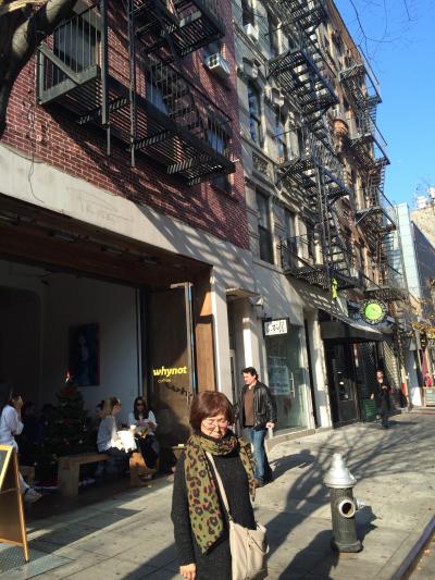プエリトリコから帰ってNY最後の日に自家製ハム・ソーセージやコンビーフなどのサンドイッチで超有名なカッツ・デリカテッセンで昼食をしたあと、地元の人しか行かない美味しいコーヒーの店に行きました。しかし、夜はバーとなって生演奏もあるそうでが、帰国が17時前だったので楽しめませんでした。広い空間の壁際にテーブル並んでWi-Fiがあるらしく、学生らしき男女がPCを長時間使っているせいか、店の前にある長椅子しか空いていませんでした。昼はドアむがオープンで夜は閉まりバーになるそうです。また、日本では珍しく、トイレは男女兼用でした。コーヒーをステイオーダーすると可愛いマグカップに次いでくれて美味しかったです。雰囲気も最高でした。