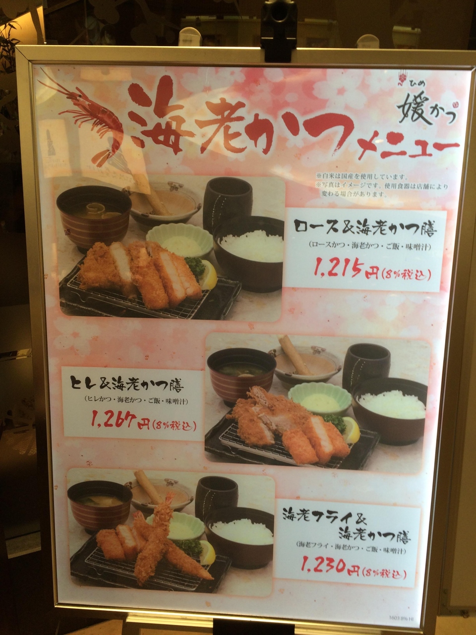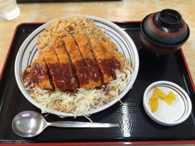 エビ丼もご飯の量は多くエビ3本にタルタルソースがかかってます。カッチャー飯は炒飯の上に千切りキャベツ、その上にトンカツとソースで2人前位の炒飯。インパクトも美味しさも抜群でした。ブログ通りと言うのも珍しく県外ナンバーも多かったです。帰りは岡山城まで15分弱と近かったです。- 旅行時期