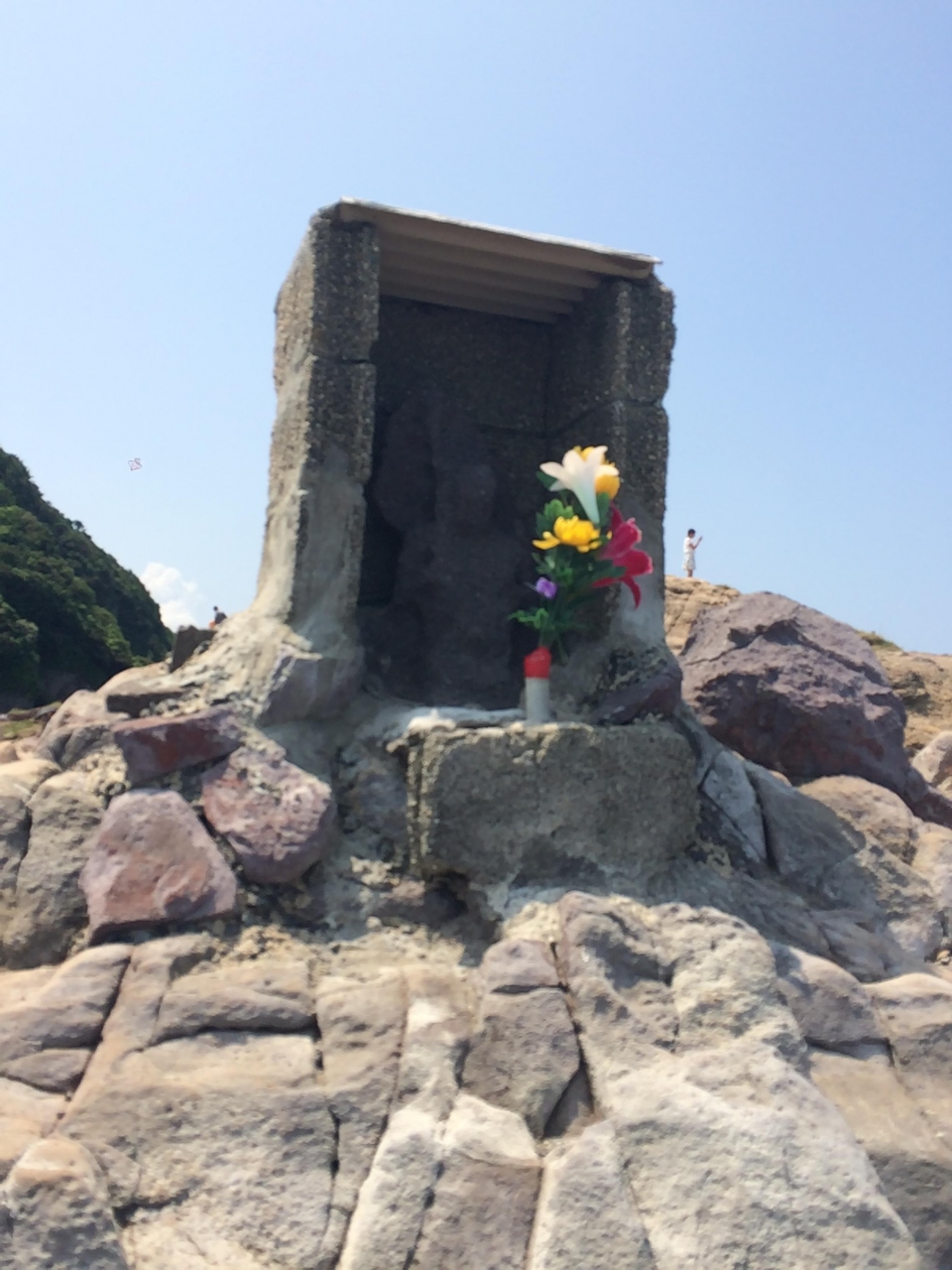 岩の上ある祠があり数歩あるくと絶壁でその真下にある岩から噴出するそうですが、北風吹き海が時化ると30m吹き上げ、龍が天に向かって登る有様に似ているそうですが、冬にこの不安定な足場を歩くには、相当勇気がいると思います。という訳で今日のような天気の良い日は見られないさうです。- 旅行時期