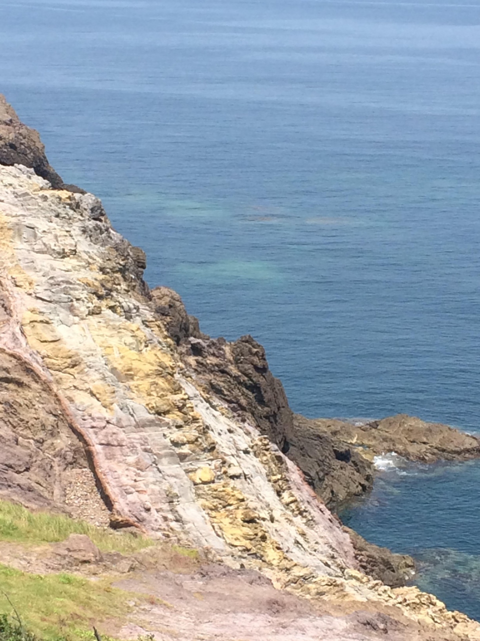 玄武岩の奥に龍宮があると伝えられているそうです。この場所に行くには二通りで、展望台の下から降りる方法と、元ノ隅稲成神社から行く方法です。潮吹きとは、圧縮された後期が海水を激しい勢いで外に出そうとして上方に海水を噴出させるそうです。この場所に行く道は、かなり沢山の人が歩いたのか、岩が削れて滑りやすく、噴出孔を見るには絶壁で危険ですので充分注意して下さい。地元の釣り人に聞いた処