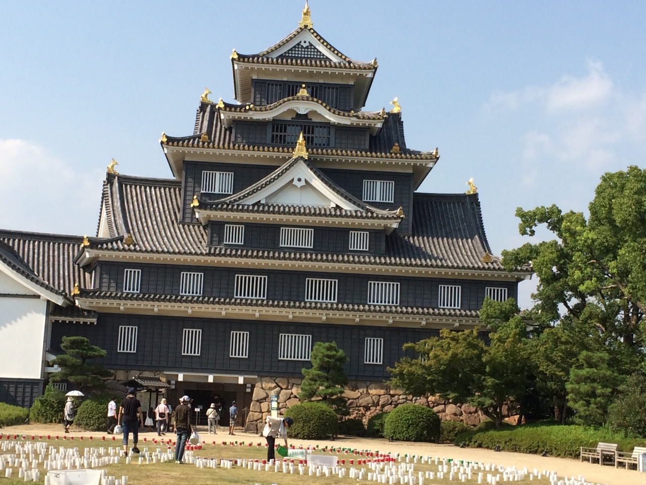 岡山には再三いっていましたが、何故かいっていなかった岡山城に行きました。岡山城は別名烏城と呼ばれ織田信長が築いた安土城にならって築城された日本を代表する城郭建築です。城の入口側に烏城公園と書いてある大きな石を横目に、不明門(あかずのもん)から入り城の前に立ちました。烏城と呼ばれている通り全容が黒です。入城してエレベターの前に金のシャチホコが展示されていましたが綺麗でした。エレベーターは4階止まりで5階6階は階段で天守閣に、そこには立派な金のシャチホコが見えました。天守閣には寄席や駕籠、着物の着付けと写真撮影、備前焼体験など他の城にない趣向が多くあり見応えがありました。あと城の近くの烏城公園駐車場に停めると天守閣に入ったひとは150円の割引があります。また、後楽園のセットで買うと560円と安くなってます。但し、65歳以上は単独で買った方が安くなります。1時間駐車すると300円(天守入場のスタンプで150円割引)、岡山城と後楽園の共通券を購入すると560円、65歳以上のシニアは岡山城300円、後楽園のシニア入場料140円で合計440円となります。