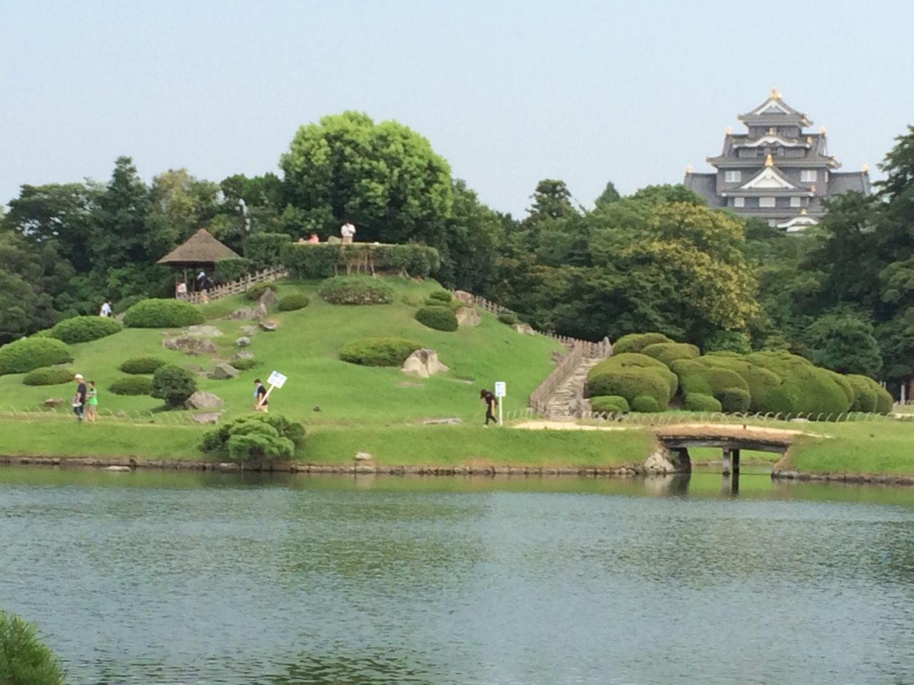 十数年前に行ったことはあるのですが、観る時間がなくあまり記憶に残ってなく、機会があれば再訪したい場所でした。岡山藩主池田公により静養場や賓客接待のばとして作られ、その後も藩主の好みで手が加えられ江戸時代の姿を大きく変えることなく現在に至っている珍しい名園です。延養亭や能舞台を中心とした停舎、園内各所に置かれた茶室。広い芝生地や池、築山が園路や水路で結ばれ、歩きながら移り変わる景色を眺めることが出来るように工夫された回遊式庭園です。夏の時期は幻想庭園として18時からビヤガーデンやバーがオープンするそうですが、お酒を飲まないので寄るの入場は見合わせましたが、外国人がバーのオープンの時間を聞いていました。1時間程滞在して5時半位にでましたが準備はされていました。庭園からバックに岡山城が見える景色はよかったですが、炎天下の中1時間歩くのに疲れました。