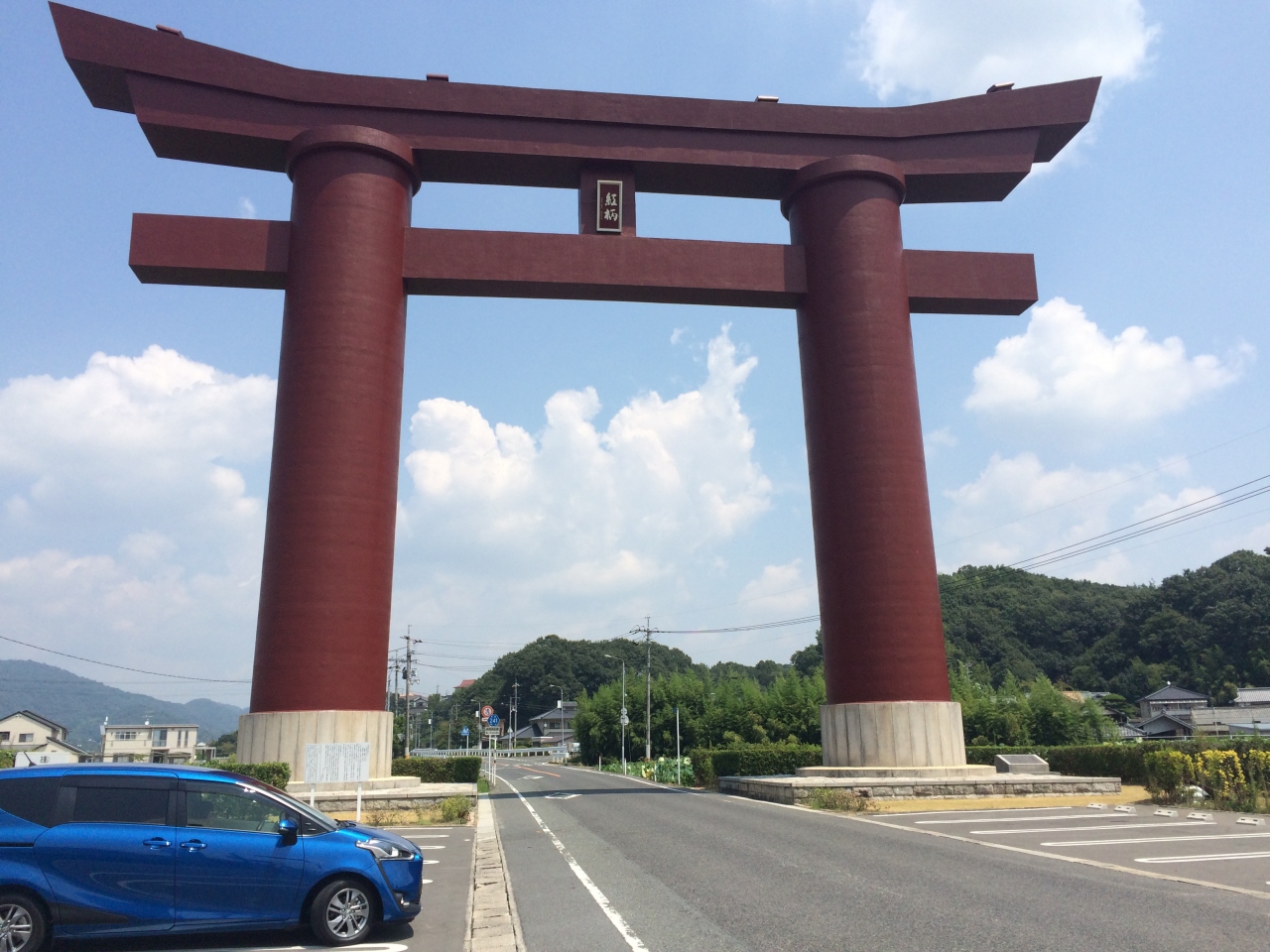 風光明媚な田園に突如出現する巨大な大鳥居が出迎える最上稲荷山妙教寺です。明治の神仏分離令の際、特別に神仏習合の祭祀形態が許され、仏教の流れを汲むお寺です。寺でありながら鳥居をそなえ、神宮形式の本殿があります。大鳥居を写真に撮り駐車場に車を停めて歩いて観光しましたが、十数年前にも参拝しているのと観光時間が切迫しており簡単に参拝しました。でも、大鳥居を撮影して祈祷ゾーンと文化財ゾーンを撮影しようとしたときにスマホの電池切れとなり、倉敷美観地区、阿智神社、鬼ノ城、高松城址、吉備津神社で電池を使いすぎてしまった。後半は車に帰って充電。