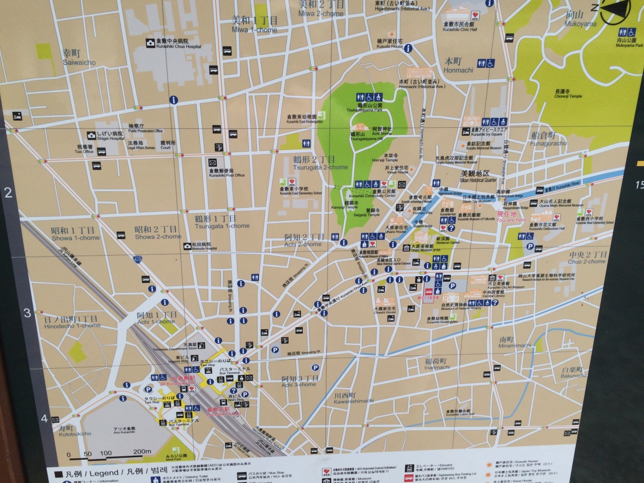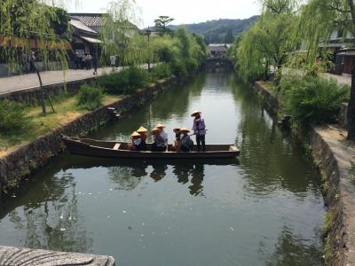 当初の予定には美観地区は十数年前に訪問しているので除外していたが、奥さんの希望により急遽訪問先を変更。駐車場は美観地区にある地下駐車場に入れ美観地区へ、30分100円です。川の周りは昔の面影がありますが、奥の方にも足を延ばして歩いてみると結構観光する場所やお店がありました。我が家の奥さまは満足さりたようです。帰りに1時間の駐車時間迄12分となり、先に駐車場へ行って車をだしてバスの駐車場に停めると、目の前が交番だったので、女房を探すと行方不明、駐車場の手前で別れたのに信号を渡って反対の方向に行ったらしく、方向音痴の妻を一人にするのは危険でした。でも駐車場手前100mだったのでまさか違う方向にいくとは?