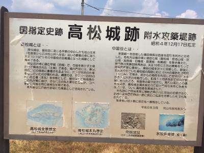 備中高松城址に行ってきました。ナビで登録すると行きすぎたので引っ返して駐車場から行きました。関連遺跡としては、資料館、清水宗治の首塚、胴塚、自刃の地等がありますが、これといって目を引くものはありませんでしたが、天下布武の旗印を掲げて中国攻めを行い、三木城、鳥取城の兵糧攻め、高松城の水攻めは壮絶な戦いとなの、三大攻防戦となったことは有名です。小さな資料館ですが無料なのでぜひ入館してみて下さい、水攻めの攻防の資料やビデオがあります。お母さんに連れられて関西から来た小学校1年生の親子が、テレビでみた歴史の話をしていて良く背景が理解できたと話していましたが、小学校低学年からお城と戦国時代の歴史教育をしているのには驚きました。