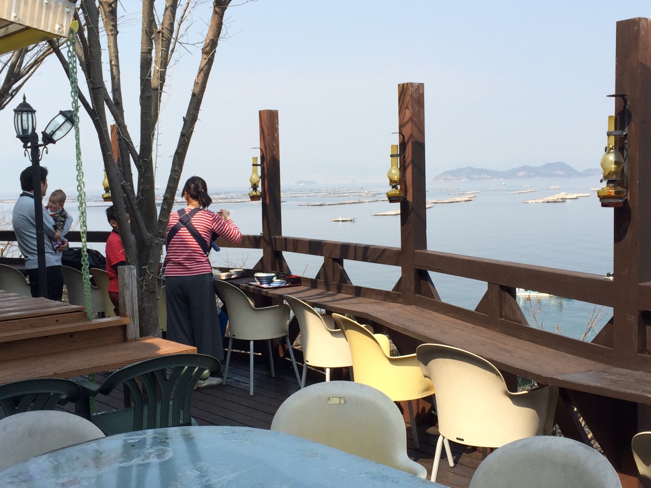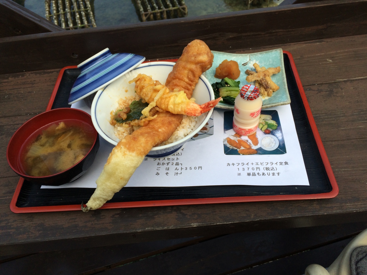 先日テレビで丼からはみ出る大きな穴子丼を放映していて家族が行きたいと言うので孫も連れて行って来ました。家を出で音戸、大柿、能美と海岸線を走行し1時間20分かかりました。ナビに正確な場所が登録できなかったのでお店の旗を探して行きました。入口はテレビ放映とは違った雰囲気。お店の人の指示で壁に貼ってあるメニューから穴子天丼3人前と鮭とイクラの親子丼を注文。それからトレーを持って小鉢2つをテーブルから選んで味噌汁を注いだりすべてセルフでした。私達は丼を注文したのでご飯を自分で入れる事はありませんでした。それが済むとトレーを持って海の見えるテーブルが食堂かを選択、テーブル席で食べる事にしましたが、椅子が非常に汚かった座布団を敷いて座りましたが海側ではなく中央のテーブルは半分は綺麗で丼は運ばれてきました。穴子を食べる瞬間にちょっと臭いが感じましたが食べると匂わなくなりました。タレとお米は美味しかったです。やはり大きすぎる穴子は美味とは言い難い?穴子2本の穴子丼ではなく穴子1本の穴子天丼にして正解でした。でも全面は海なので景色は良かったです。