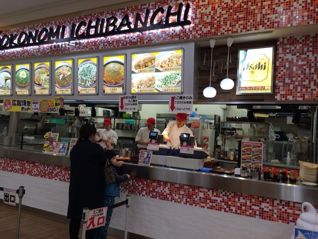 ゆめタウン3階にあります。少し焼きすぎのところはありますが美味しいです。色々なフードコートがありますが、結構注文する人が多く休日とかは行列が出来ています。広島焼きなら680円そのだ6種類あり、ダフル(2人前)でも無料で可能です。ポイントカードを発行していて500円毎に1個版を押してくれます。20ポイント溜まるとどのメニューでも無料で、次回も半額で使えて大変お得です。