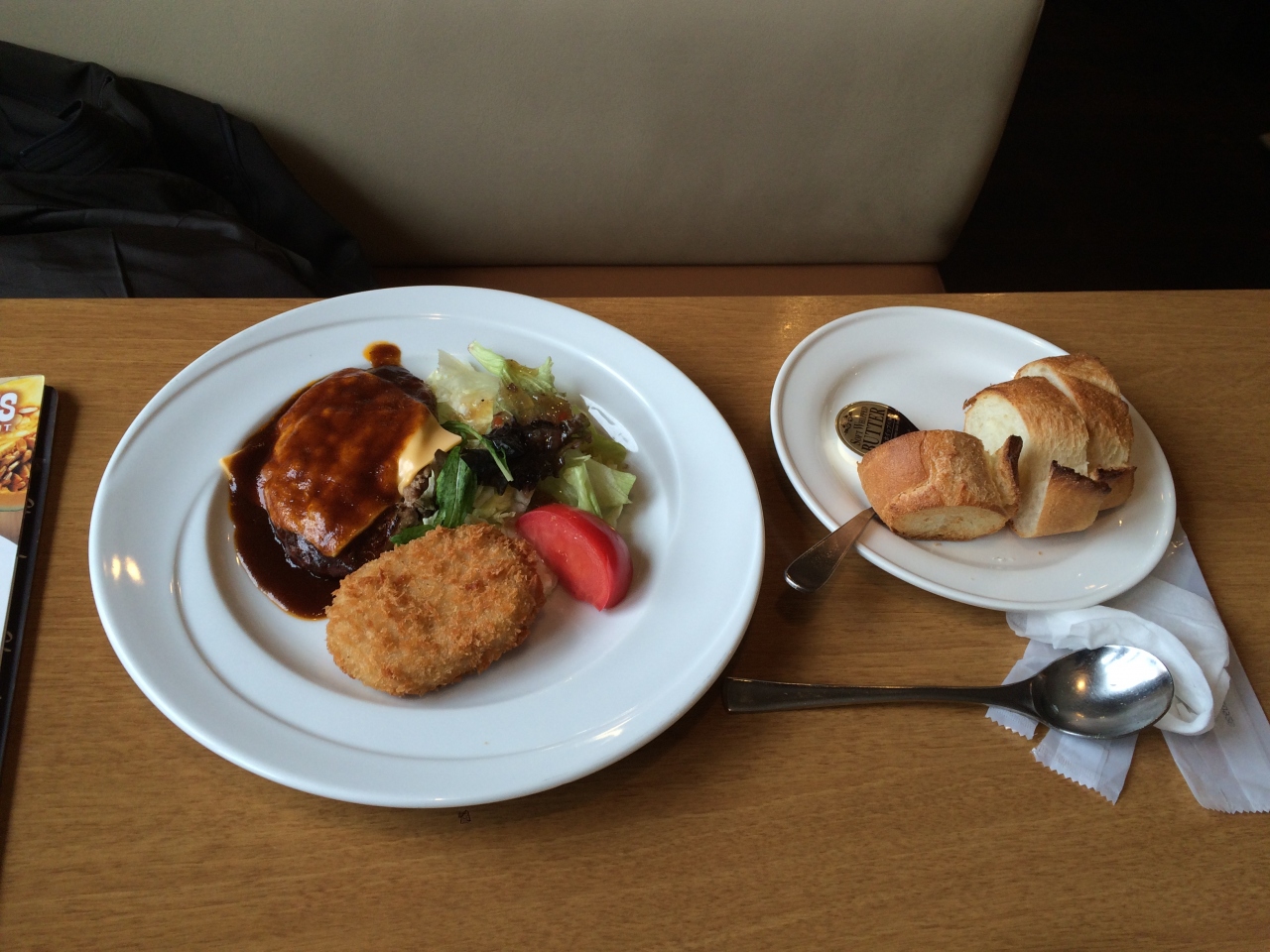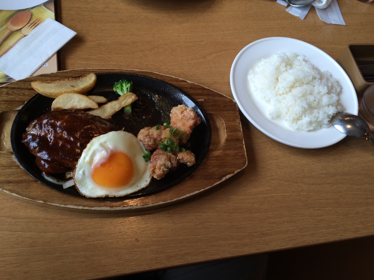祖父の見舞いに行く前に隣のココスで食事した。サンデーサン時代にはよく通いましたが現在は呉駅周辺に買い物も食事も同時にできる商業施設が複数出来ている為です。日替わり定食とハンバーク何とか?を注文おいしかったです。受付や注文時の対応は良いとは言えず少し淡泊な対応かな。