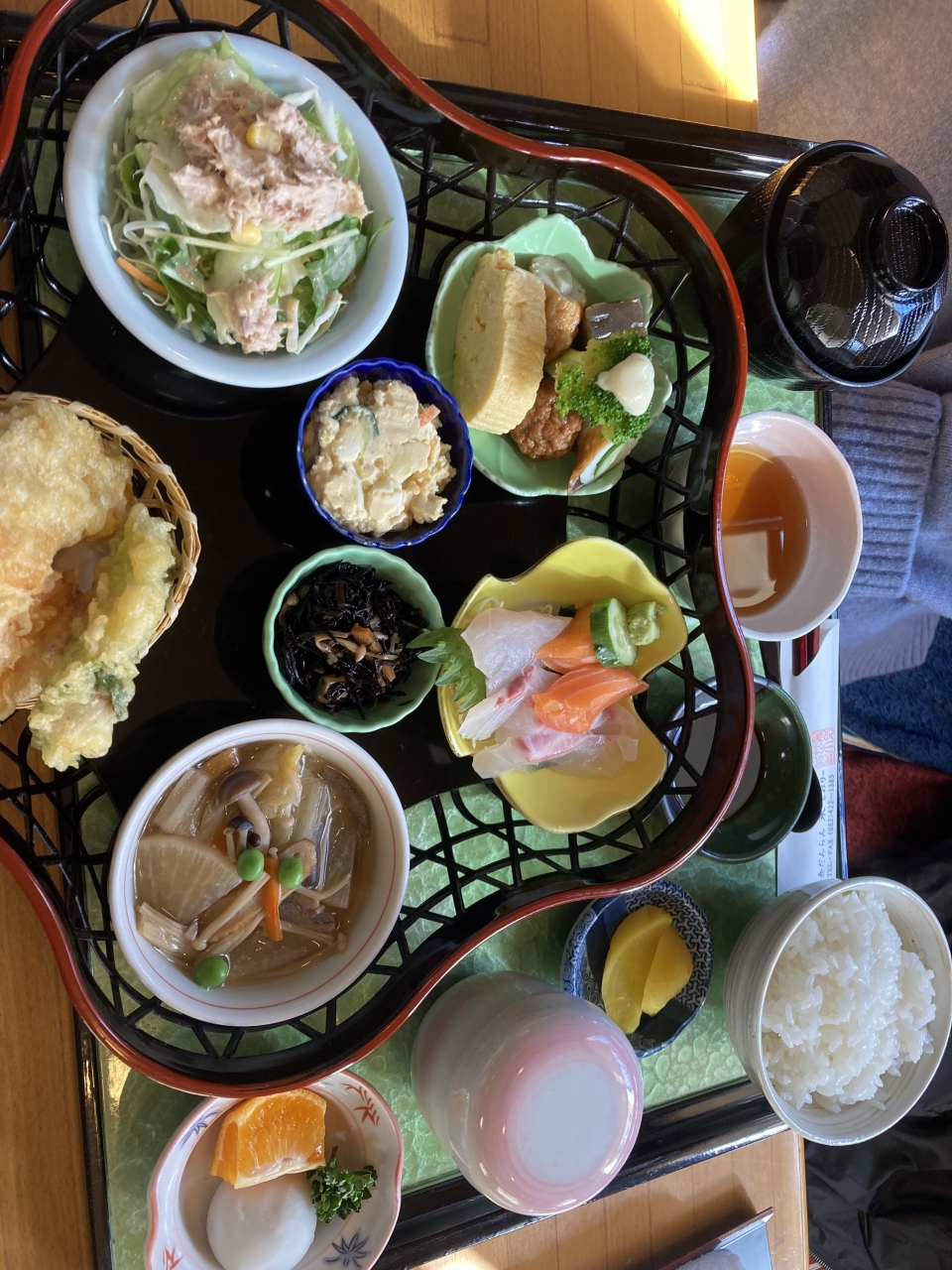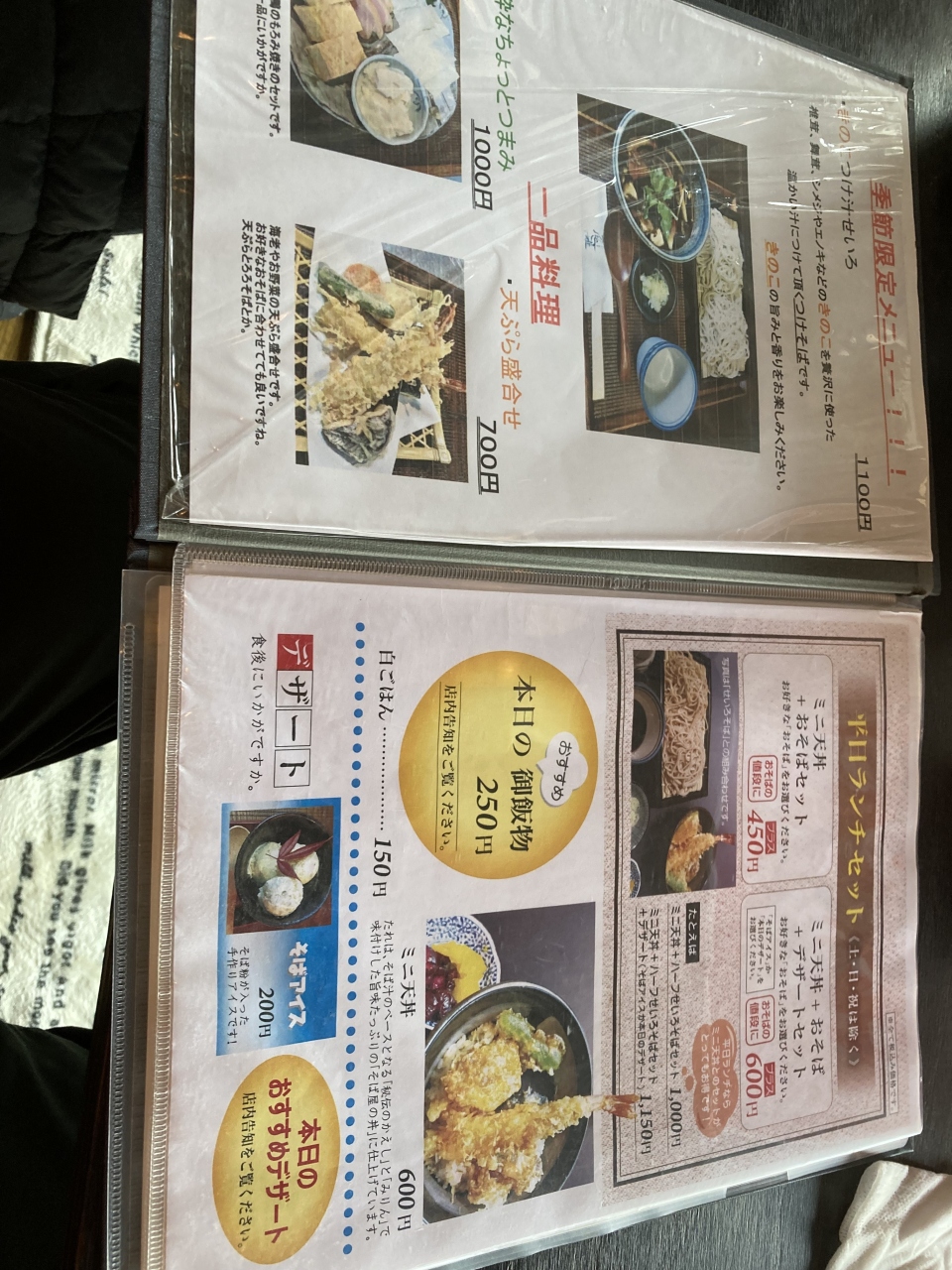 一部のウエブで11時開店とありましたが11時30分開店が正解です。口コミには駐車場がが少なく断念する事が度々あると書かれていたので、開店15分前に行きましたが4台(1台は軽用)あるうち2台は既に開店待ちで私の車を含むと1台しか残っていない状態でした。ペイペイ還元30%の店をスマホで確認し、入店後座席に案内され栞御膳と天そば御膳を注文。口コミ通りボーリューム満点、品数も多く美味しく満足出来ました。駐車場が少なく住宅街にあるにも拘らず開店後すぐに満席となったので、余程の人気店で良い店に巡り合えてよかったです。- 旅行時期