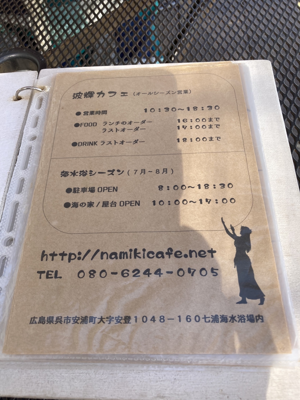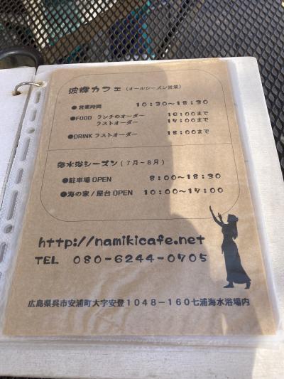 呉方向から国道185号線を走行し、広、川尻を通って神田造船を過ぎて安浦に入ってすぐ横道を海方向に右折して離合出来ない道を下って行くと、この先通行不能の看板を見て1台がやっと通行出来るくねくねした道を走行すると着きました。着いた先は七浦海水浴場の看板がある場所です。私達はスデザートを食べに来たのですが満席で外にあるテラスで海を見ながらデザート盛り合わせと水出しホットコーヒーとカフェオレを注文。コーヒーは非常に飲みやすくデザートは豪華で美味しく、貝堀と海とサップを見ながらリラックス出来て来た甲斐がありました。