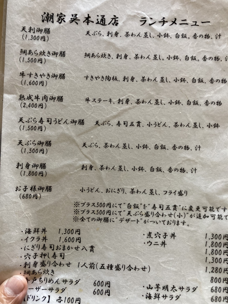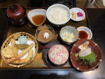気に入った店がなく、熊野にも無く高速を走って呉の中通りにある潮家に電話していきました。コロナ禍前は安浦にある総本店は豪華で美味しので行ってましたが本通りは初めてです。呉の中心部ですが無料駐車場がないので行き難いです。日曜日とあって人出はなく休業している店舗もなく、個室で天刺御膳と天プラ寿司うどん御膳を食べました。