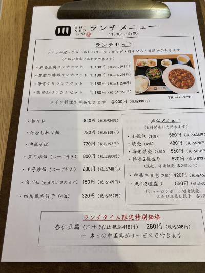 ランチメニューの中からエビチリランチセットとチンジャオロースセット(週替わり)、点心メニューより点心3種盛りと杏仁豆腐(中国茶サービス)を注文。海老チリは見かけより美味しく、チンジャオも美味しかった。点心3種盛りも味比べができて美味しく、杏仁豆腐とサービス中国茶も美味で入って正解でした。- 旅行時期