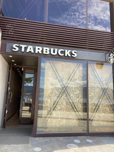 フェリーに乗って神社に向かって歩いていると、今日は天気が良すぎて熱中症になる位暑かったので商店街にあるスタバで休憩。