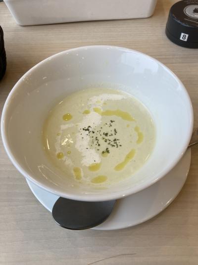 呉市が実施しているペイペイ、d払い、aUpay還元20%サイトを見ていて呉にしては斬新で美味しそうな店を見つけたので行ってみました。市中心部にあり1Fには薬局、ヘルスケアコンビニがあり2階は全面ガラス張りでタニタカフェとコラボしたカフェがあります。駐車場は15台程ありますが、満車の場合は道路を隔てたアトムガレージの40分割引券を貰えます。店内は広くコロナ感染対策なのか全てがテーブル席です。色々なワンプレーと料理がありましたが、自家製麺パスタランチの中から「トロけるモッツァレラセットと茄子のカベルネボロネーゼフェットチーネ」と「10種野菜と桜海老のぺペロンチーノ」にパン2種類と本日のドルチェとタニタコーヒー付で別注のごちそうスープセットの中から「豆とタニタ豆乳のビシソワーズ」を注文。野菜が多くてメイン迄に満腹になりそうでした。面は好みに寄りますがボロネーゼが濃厚で美味しかったです。ただそれを上回ったのが豆と豆乳のビシソワーズの冷と温の二通りのスープが絶品で、食べる価値が大いにありお勧めです。