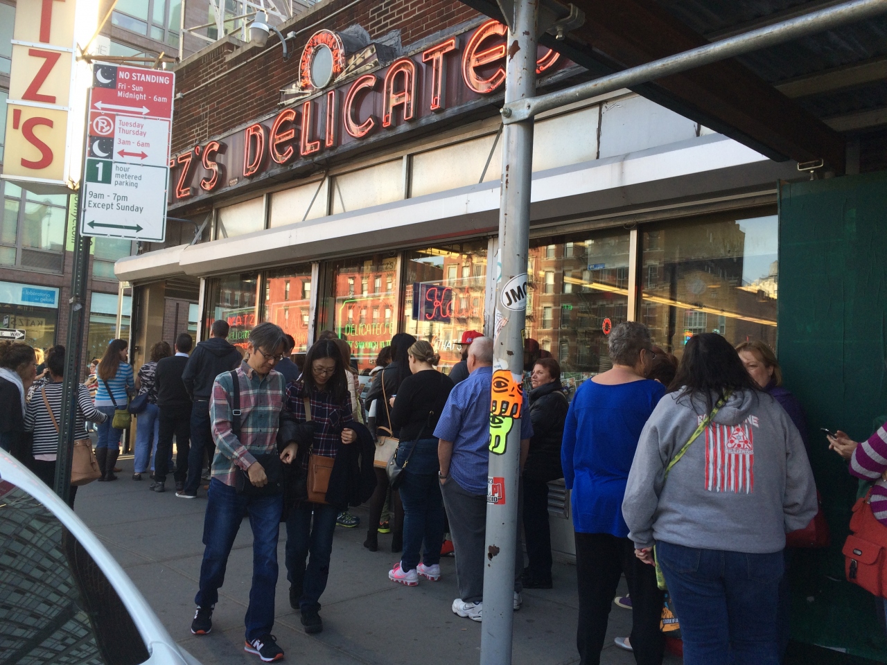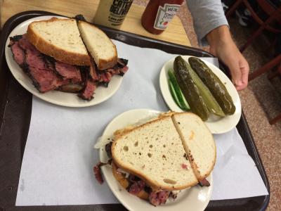 有名なサンドイッチの店で遅く行くと待ち時間が半端でないというので11時過ぎに訪問するも、既に店内はごった返していたが外は長蛇の列ではなかった。しかし、次から次に客が入ってくる。受付で注文したものを書いてくれるチケットみたいなものを貰い精算時にそのチケットを提示するシステム。過去にそのチケットを無くして無銭飲食でトラブルとなった事もあるというので絶対無くさないよう注意を受ける。早速サンドイッチと飲み物を購入、ボリューム満点、中身も肉でぎっしり詰まって溢れそうで非常においしかった大満足て店を出たら既に長蛇の列だった、普通1時間以上は待つらしい