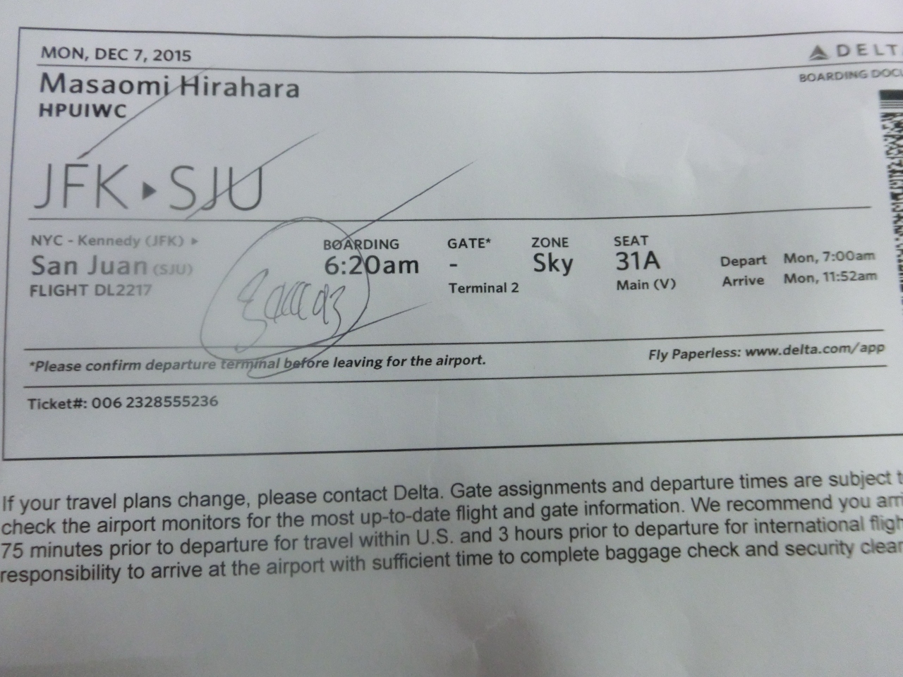 ニューヨーク滞在一週間強が過ぎて今日は赤道に近い真夏の国プエリトリコに出発。