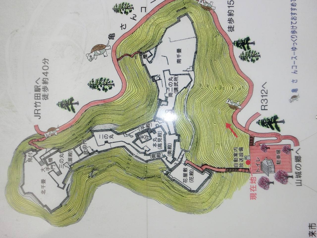 10日間の北海道からフェリーで敦賀港に着いて福井県を観光一泊して早朝から帰路に着く途中に寄りました。まず駐車場まで行くのに大渋滞でした。原因は竹田城から滑落した人がいて救急車とパトカーで先に進めず2時間以上かかりました。駐車場からは登山するように急な山道をひたすら歩く、歩く、城に着いたら疲れ果てていましたが、城に着いたとたん景色の素晴らしさに疲れがとれました。流石に天空の城と呼ばれる所以がわかったような気がします。城跡には所々崖が崩れそうなので注意書きがあり、毎年人が滑落していると聞きました。残念ですが霧の竹田城は見れませんでした。早朝等の一定の条件下でなければ観れないそうです。体力がないと登るのには苦労しますが、子供も登っていたので大丈夫かな。