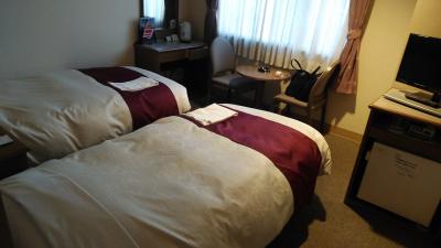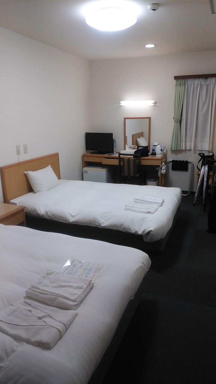 本当はトヨタレンタカーの前にあるホテルのツインの空室を待っていましたが、ツインのホテルがなくなりました。このホテルにはツインがあったのでとりましたが、本来シングルが主体のようで1階フロント奥に2,3部屋あるツインの一つでしたが割と部屋が広く、翌朝は大雨で駅に近くよかったです。でもリーズナブルで朝食も質素ですが無料なのと駅の前にあり利便性は抜群でした。