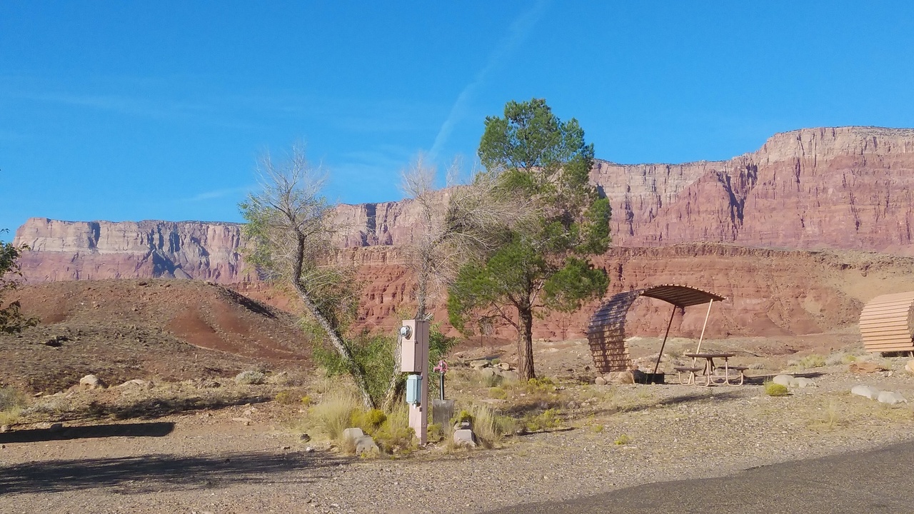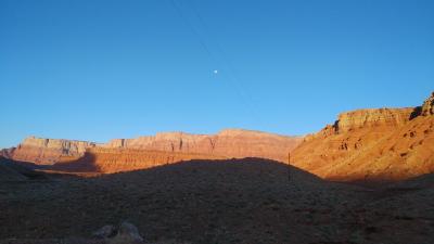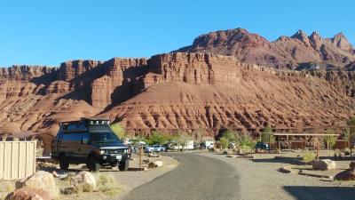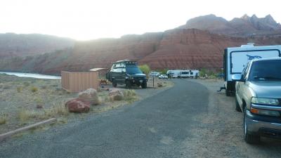 アッパーアンテロープを観光後にキャンプ場に到着しました。キャンピングカーの設備はほぼ完備していて、キャンピングカーが殆どでしたが、RV車も若干いました。すぐ近くにはクラウド釣りが出来て、朝日が昇るのと月が沈むのがほぼ同時に見れ、周辺に朝日がかかる光景は素晴らしかったです。