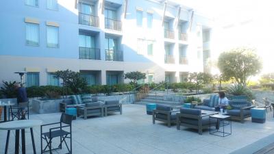 アリゾナからカルフォルニアのジョシュアツリーを観光して、ホテルに到着。夜だったので入り口が狭いホテルだと思ったのですが、二階の受付に行くと内部は豪華で、横にあるバーで皆さん楽しんでおられました。ビーチでサーフィンなどをして2泊したのですが、室内も広く朝は無料の水と果物入りの水とコーヒーにビザが並んでいてサービス満点で、ホテルリゾートを満喫できてよかったです。
