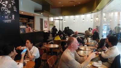 帰国したあと時差ボケ解消のため1泊して、翌日ホテルから成田経由羽田まで時間があったので、朝食を食べました。第一ターミナルなので海外利用の人がこんなに多いのかと驚きました、サンドイッチとコーヒーを注文しましたが、米国のハンバーガーの大きさに比べたら小さく感じ満腹感が今一歩てした。空港なので若干高めの価格設定です。