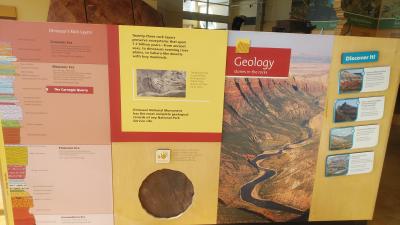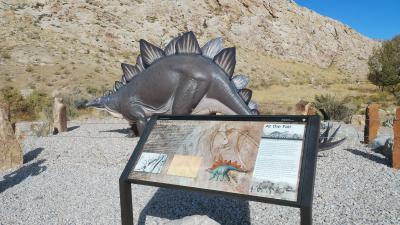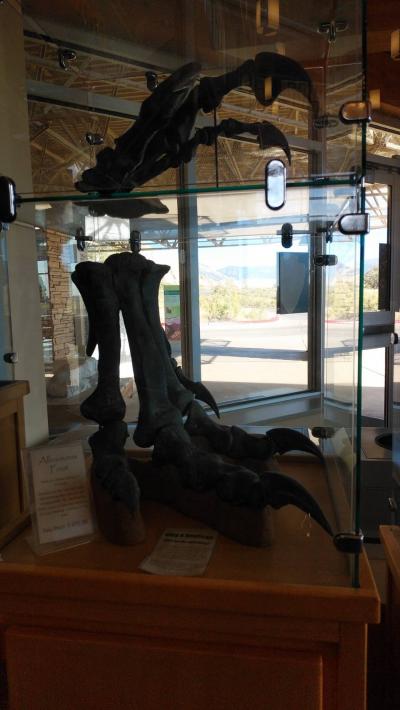 ユタ州から国立公園巡りの3日目。公園入口の施設にいるレンジャーからチェックを受けて大きな駐車場に大型RVキャンピングカーを停めて博物館に行くと、入り口に恐竜の像があり中に入ると発掘された恐竜の骨や化石、地層等の展示や説明があり、博物館の裏山には化石を探している人達がいたので、私達も探してみましたが限られた時間では到底探す事は出来ませんでした。しかし、夢のある場所で日本では体験できない経験が出来て楽しかったです。