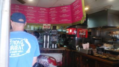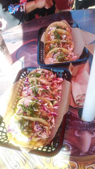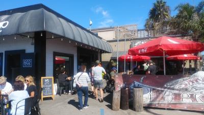宿泊しているキンプトン・ショアブレイクホテルの通りを隔てた角にあり、目前がビーチで景観も良くランチで利用しましたが、行列が出来ていて並び、注文者以外はテラス席を確保する列に並びました。やっと席に着けたと思ったら名前を呼ばれ料理を取りに行き、落ち着いて食べる事ができました。太陽光が強いですが、陰は涼しく、晴天の中ビーチやサーファーを見ながらのランチで最高のシチュエーションでタコスも美味しいリラックス出来て良かったです。