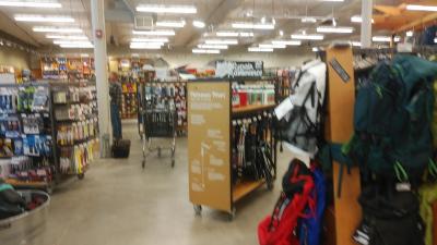ユタ州ソレトレイクシティ空港に着いてホテルで1泊し、翌日、レンタルしたシボレーサーバーバンから大型RVに乗り換えて、国立公園巡りの準備の為に寄りました。大規模な駐車場の中にある施設の一画にあり、店内は広く日本に比べ圧倒的に豊富なアウトドア用品が揃っていて、価格も日本より安かったです。また、スキー、登山、海、川、釣りとあらゆるアウトドアに対応していて、旅行前でなかったらずっと見ていたかったのですが残念。今回はキャンピングカーに必要な備品を買っただけで終わりました。