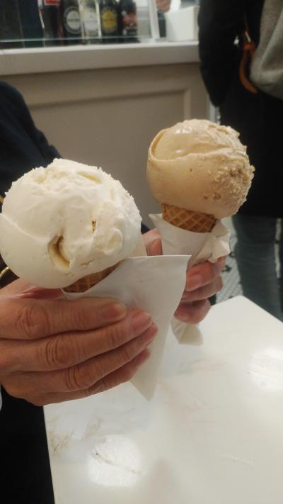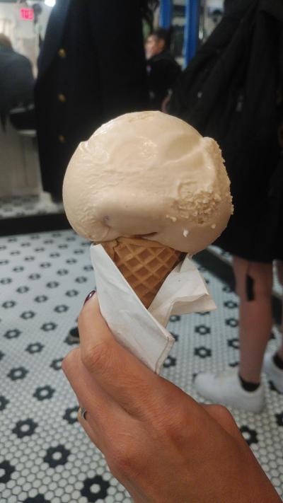 夕方から地下鉄でブルックリン橋に行って歩いて渡って、チャイナタウンのヌードルタウンでディナーを食べた後、また歩いてアイスが美味しい店に連れて行ってもらいました。既に夜9時を過ぎているにも関わらず店内はいっぱいでアイスを買う行列ができていました。アイスの種類もチョコでもバニラでも一つではなく数種類あり選択肢が広くて日本のアイスとは若干違い、美味しかったです。