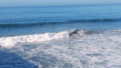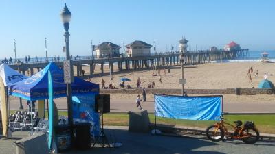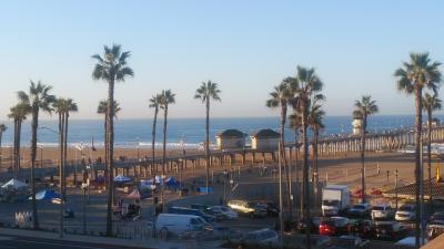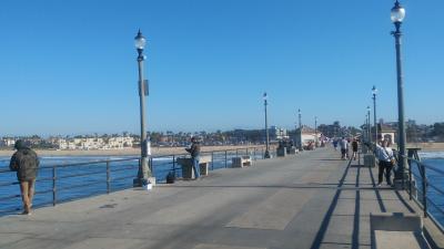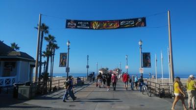 全長8.5マイルの海浜でサーフィンに絶交な場所として有名。ハイティントンビーチのメインストリートと、パシフィックコーストハイウェイの交差点から太平洋に突き出ている長さ1850フィート、高さ100フィートの桟橋で西海岸で最長を誇り、先端にはレストランもあり、多くの釣り人が釣りをしたり、桟橋下てはサーフィンをしたりと、サーフィンの重要スポットで、私達もサーフィンをしたり砂浜にある歩道を散歩したりして、キンプトンショアブレイクホテルに2泊して楽しむ事ができました。。