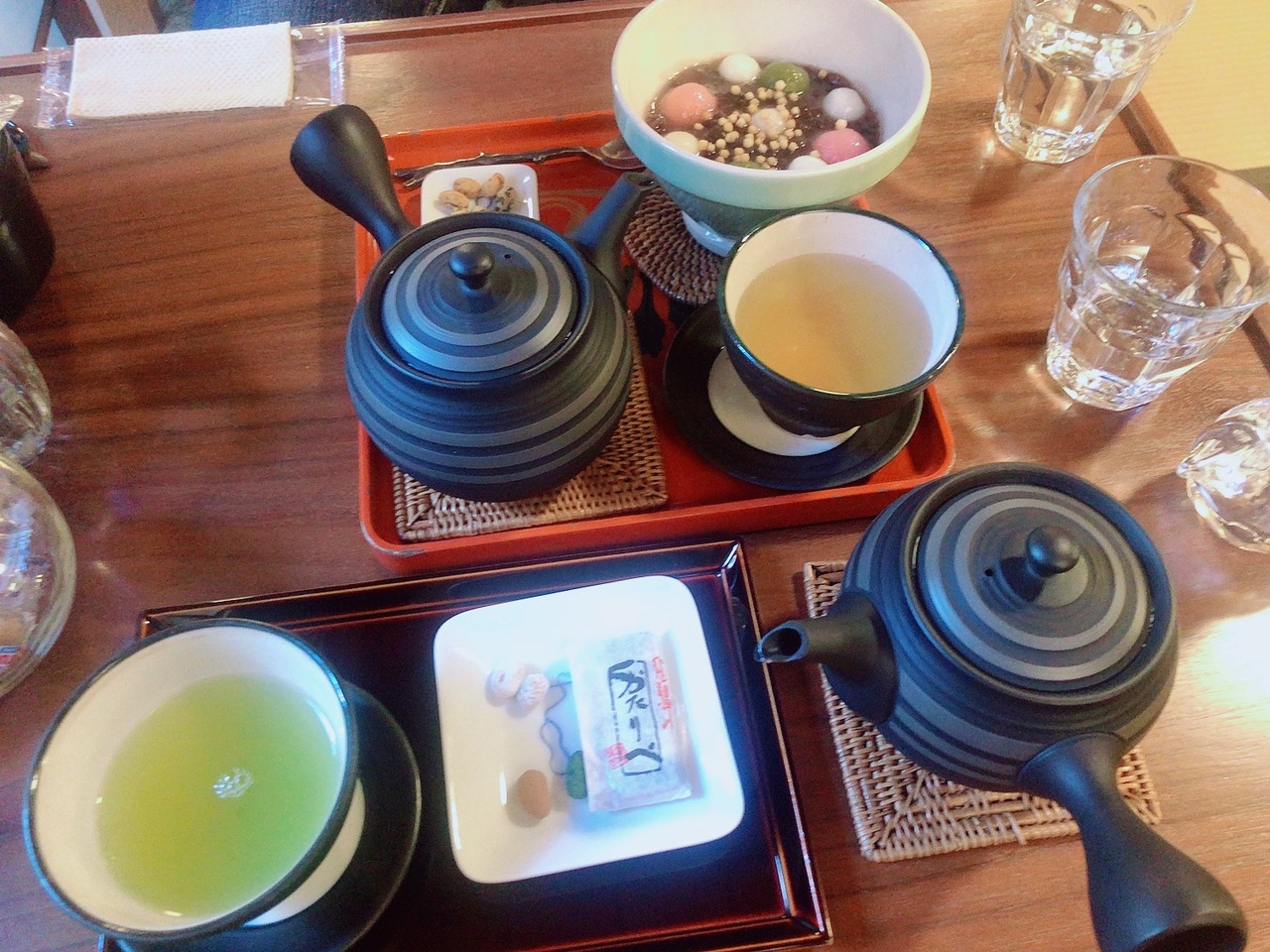 店内は畳の古民家みたいなカフェです。意外に広くて何処の席も雰囲気が良く、空いてるところ何処でも座って良いと選ばせてくれました。2人でぜんざいとお茶を頼みましたが、甘いぜんざいに暖かいお茶が最高で、落ち着きました♡