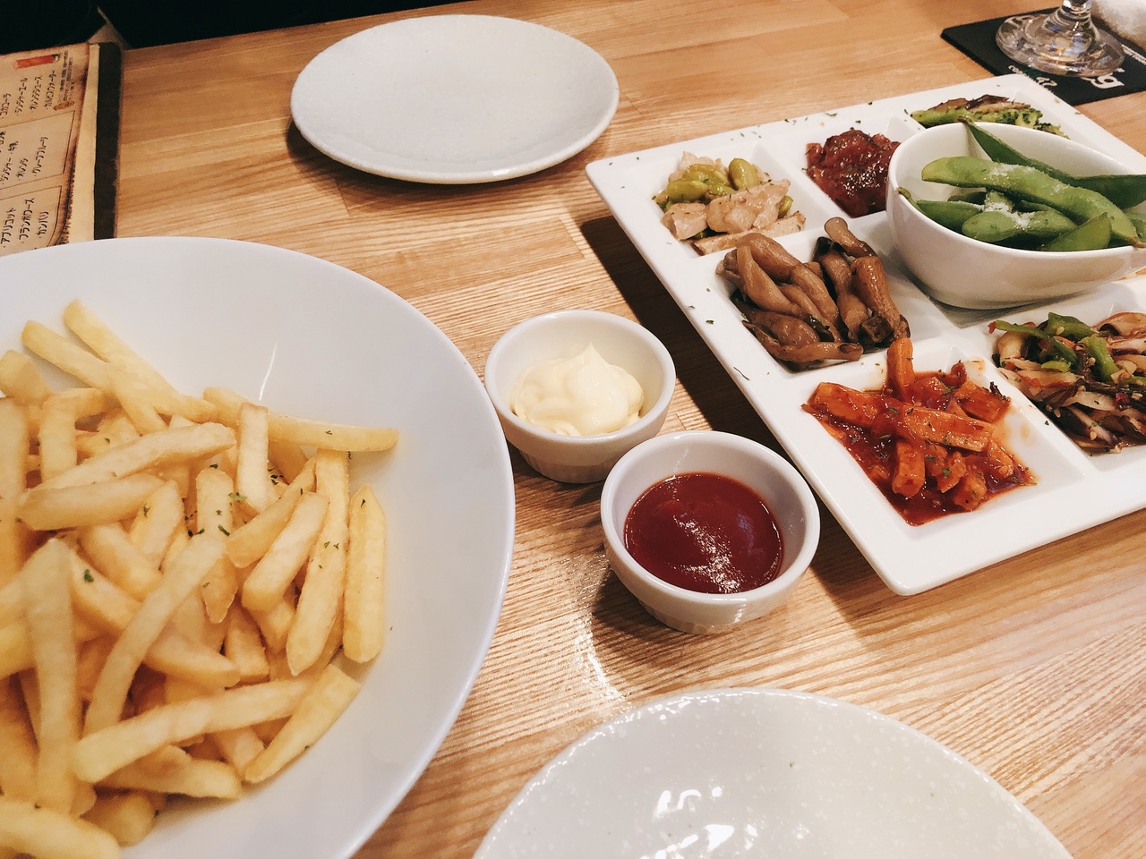食べ飲み放題のコースを利用しました。食べ物は種類が多くてポテトやパスタなどの洋食だけでは無くて、和食もいっぱいあり、デザートも食べ放題でした♡店内もおしゃれで可愛くて、ご飯も飲み物も美味しかったです♡