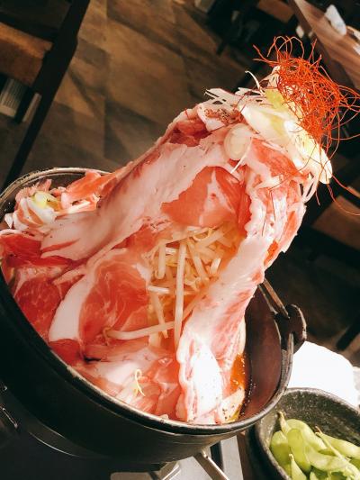 肉鍋のお鍋の中は牛肉と豚肉とホルモンとお肉まみれでしたが、スープがあっさりしてて美味しかったです⭐︎最後にご飯を入れて雑炊に出来ます。お鍋は直ぐに崩されるけど、最初来た時は量が多くてビックリしました。