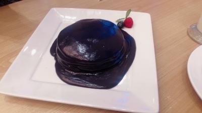 見た目は怖いけど、パンケーキはモチモチでウベソースが甘すぎず最高に美味しい。今まで食べたパンケーキで1番好き❤︎