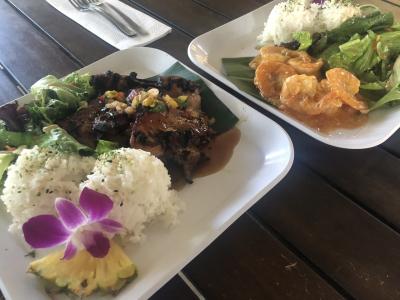 ビーチサイドにあるカフェでロケーション最高♩夕方に行きましたが、ウクレレの生演奏をしていて、ガーリックシュリンプとBBQソース味のビーフをたのみましたが、味も最高に美味しかったです★ただ鳩が多くて食べ物をテーブルに置いたまま離れると鳩の襲撃に合います。