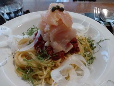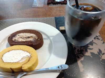 カジキのパスタとロールケーキ2つとアイスコーヒー付。