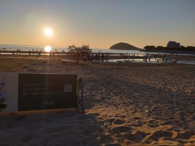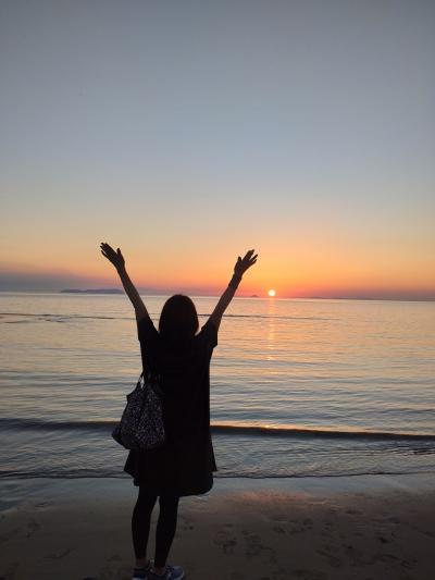 (西崎灯台で夕日を見てから歩いて移動しました。)