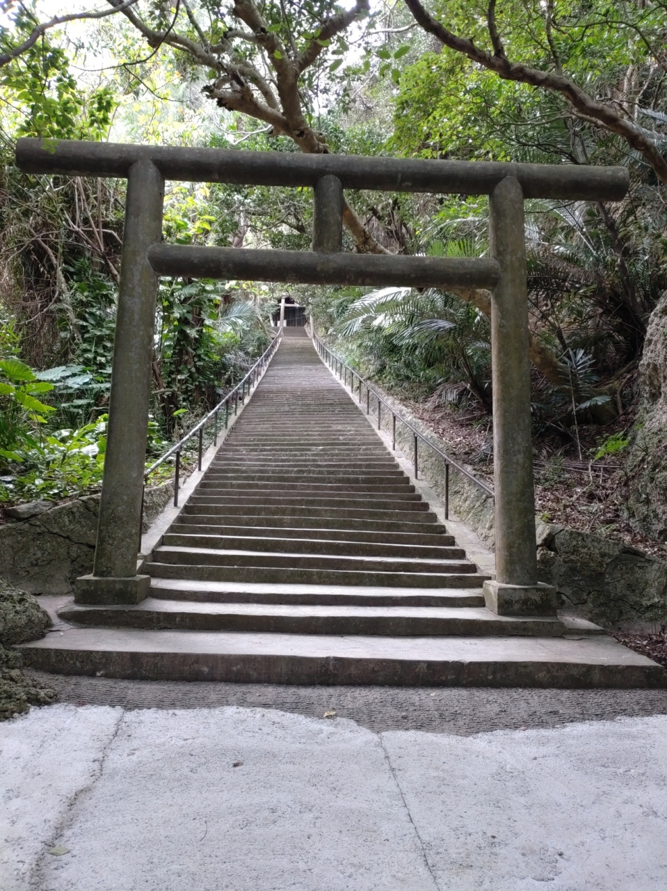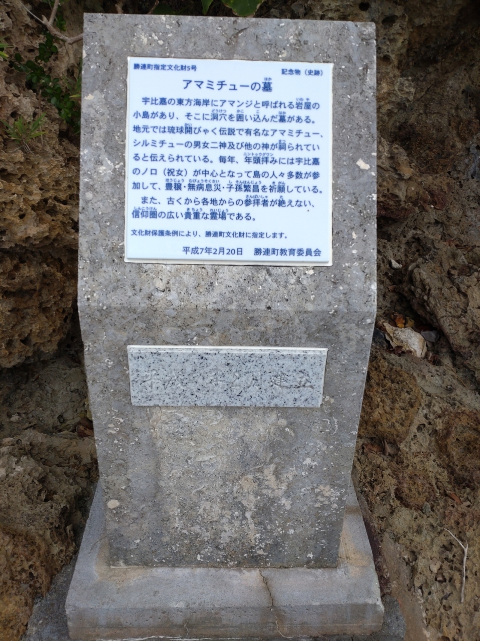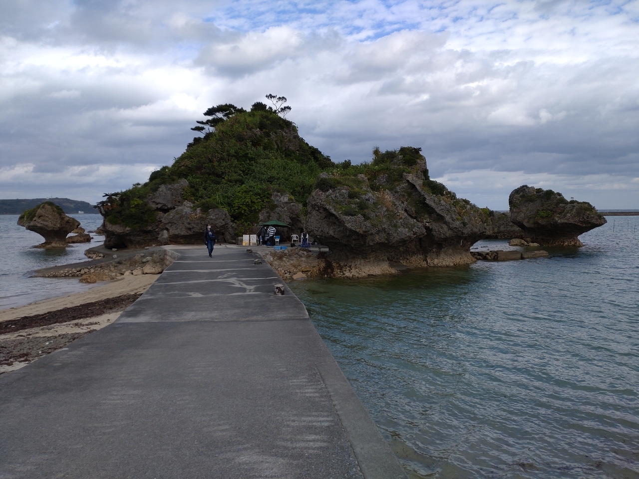 海中道路を渡り浜比嘉島にある琉球神話の女神アマミチューの墓に行きました。駐車場から歩いて岩場の小島へ行きました。