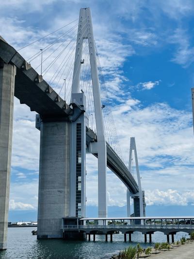 『越の潟』側はエレベーターのある橋脚が海の中にあり、連絡橋でつながっています。