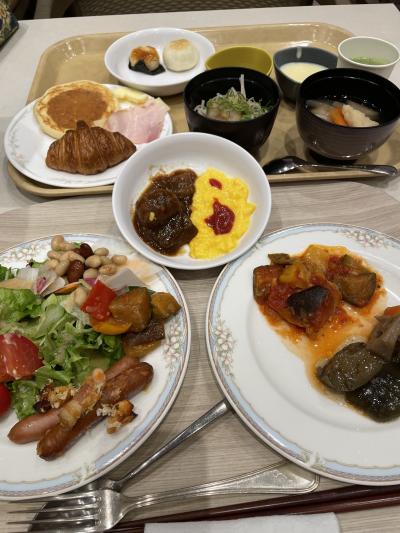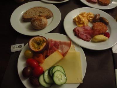 郊外のビジネスホテルのようなホテルなのでレストランは期待できません。朝食会場も会議室のような部屋です。1泊目は韓国の方と一緒でしたが、みなさん山盛りで料理を取られるので、朝一で行かないと何も無くなってしまいました…。さらにゆで卵やバナナやオレンジ、クラッカー等はお持ち帰り、サンドイッチも作って持ち帰っていました。その後補充もなく驚きました。2日目の日本人同士の朝食は穏やかで種類も豊富に食べられました。お国柄ですね~。