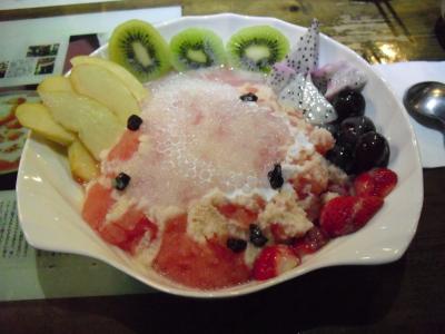 夜の九ふん観光ツアーで行きました。食事が着いていたので、食後のデザートのつもりで行きました。階段を上り、一番高い所まで来たという感じで歩きました。友人が温かい芋圓、私が冷たい芋圓+練乳を食べましたが、冷たい方に軍配が上がりました。階段を上ってくるので体が温かくなるので冷たくてもOKです。温かい方は味が薄くてぼやけているように感じました。注意は芋圓はずっしり重たいので食後には少しきついです。おなかいっぱいになりました。