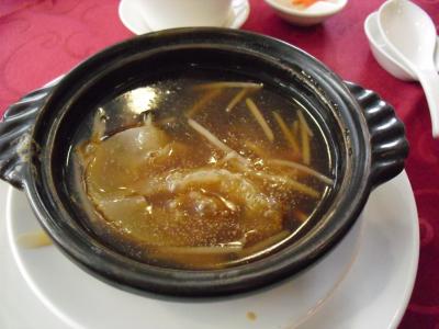 MRT『行天宮駅」から徒歩5分のガーラホテルの2階にあります。私が台湾旅行をを決めたのは、たまたま見た深夜テレビの影響からです。この番組の一押しフカヒレランチ350元也。前菜に野菜の酢漬けが出て、お待ちかねのフカヒレ。小さいながらも、しっかりフカヒレの形で煮込まれています。同じ小さなフカヒレでも横浜中華街とは大違い。コースのように順番に出てきます。次がエビと豆苗の炒め、スペアリブと鮭チャーハンとホテルのレストランなので、きちんと給仕されます。デザートにフルーツとタピオカココナッツミルクが来て、最後にコーヒー。これで350元は大変お勧めです。ゆっくりランチを楽しみました。